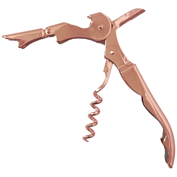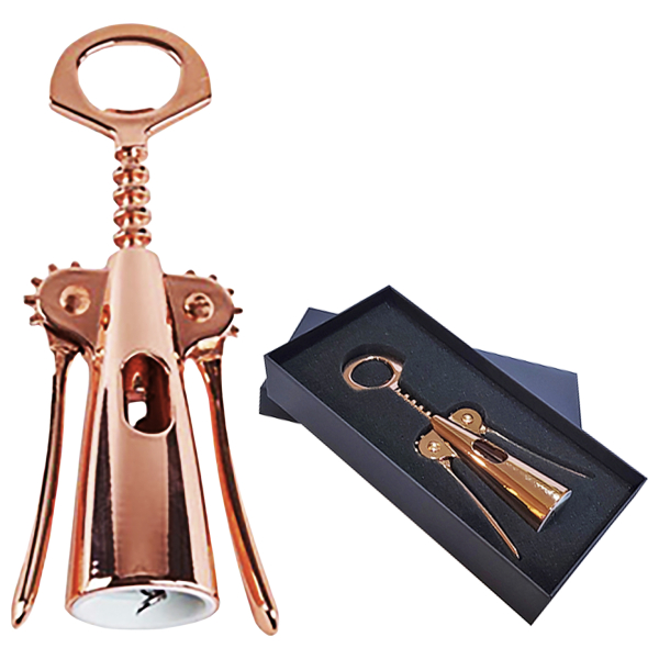 Regalar un descorchador de vino encobrizado como promoción ofrece valor duradero (recuerdo constante de la marca), calidad percibida (elegancia y sofisticación), y utilidad práctica, asociando la marca con momentos de disfrute y buen gusto, fortaleciendo la lealtad del cliente en sectores como hostelería o eventos, y dejando una impresión memorable y profesional. Al ser un objeto de uso frecuente en ocasiones especiales, el logo grabado es un recordatorio constante de tu empresa, mejorando el reconocimiento y la lealtad.