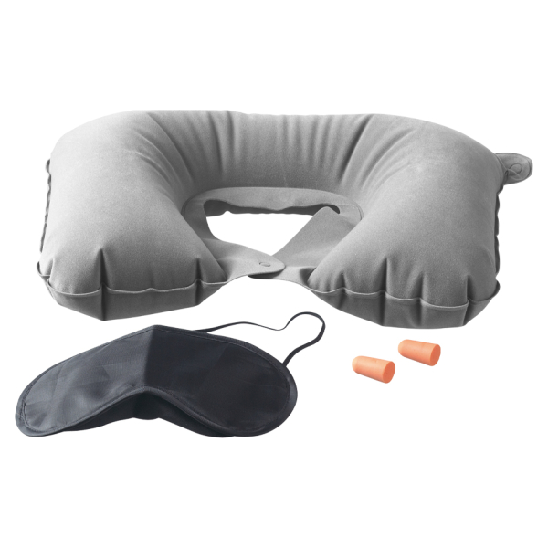 Kit de Descanso para Viajes. Incluye Almohada inflable cervical en tela aterciopelada, antifaz de microfibra y tapones de EVA para los oídos. Presentación en estuche aterciopelado. Tamaño: Estuche 18 x 11 cm.Regalar un kit de descanso para viajes como promoción es excelente porque aumenta la visibilidad de tu marca al personalizarlo, fortalece la lealtad del cliente al mostrar cuidado por su bienestar, genera una conexión emocional duradera y es un obsequio práctico y de uso constante que te mantiene presente en su día a día y sus viajes, convirtiéndose en publicidad indirecta. El logo impreso en la almohada, antifaz o neceser se ve cada vez que el cliente viaja o descansa, ofreciendo exposición continua.