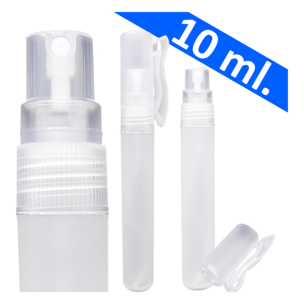 Dispensador atomizador Spray de mano transparente con clip en tapa portátil. Dimensiones: 125 mm. x 10 mm. Capacidad: 10 ml. Stock disponible con alcohol gel y alcohol desnaturalizado.