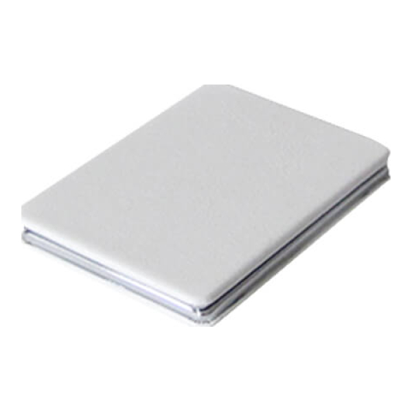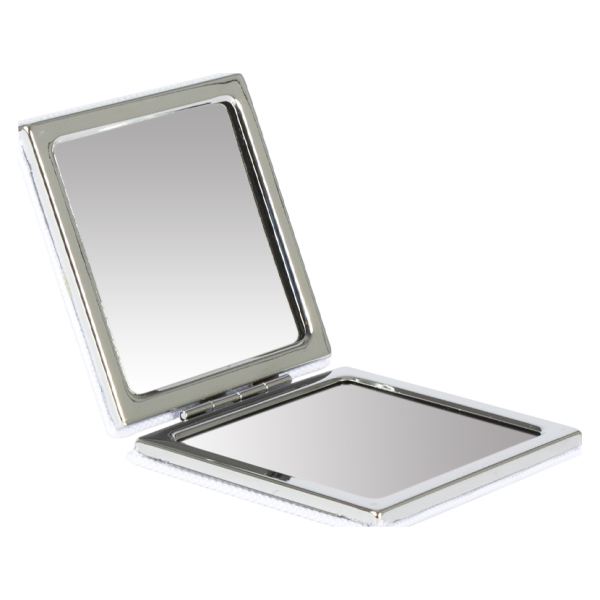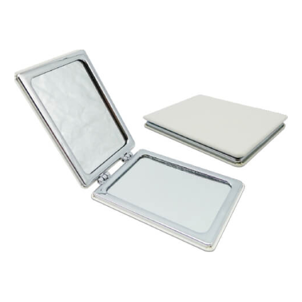 Espejo metálico cuadrado doble, con 2 tapas exteriores recubiertas en poliéster color blanco, para Sublimación. Contiene un espejo normal y el otro con aumento. Sistema de cierre magnético. Presentación en bolsa PP translúcido. Tamaño: 7.2 x 7.2 x 1.2 cm.