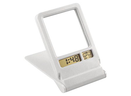 Espejo con tapa, Incluye reloj digital. 9.6x6x1 cm.
