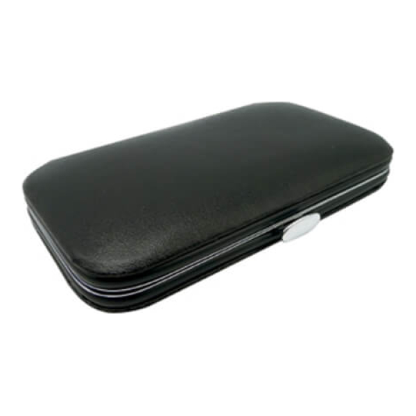Necessaire rectangular de microfibra negra. Terminaciones en simil cuero negro. Tamaño: 22 x 10 x 10 cm.