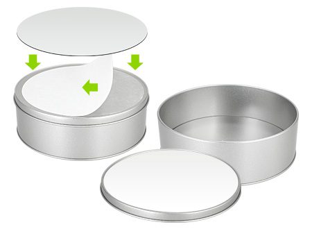 Caja Metálica redonda, con tapa y cubierta blanca para Sublimación. Presentación en bolsa de Polipropileno + caja de cartón forrado color natural. Ideal para usar como joyero, especiero o guarda-accesorios. Un regalo práctico y delicado para cualquier mujer. Ø 15 x 5 cm / Cubierta Redonda para Sublimar Ø 14.75 cm.