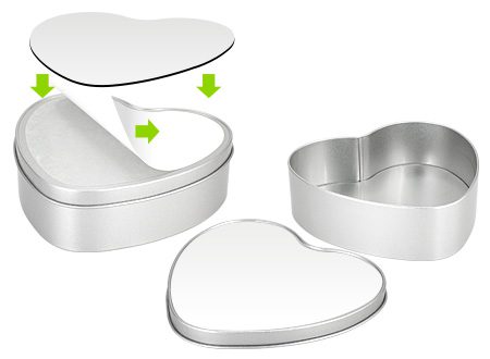 Caja Metálica con forma de Corazón, con tapa y cubierta blanca para Sublimación. Presentación en bolsa de Polipropileno + caja de cartón forrado color natural. Ideal para usar como joyero, especiero o guarda-accesorios. Un regalo práctico y delicado para cualquier mujer. 15 x 13.7 x 4.5 cm / Cubierta Corazón para Sublimar 14.5 x 13.2 cm.