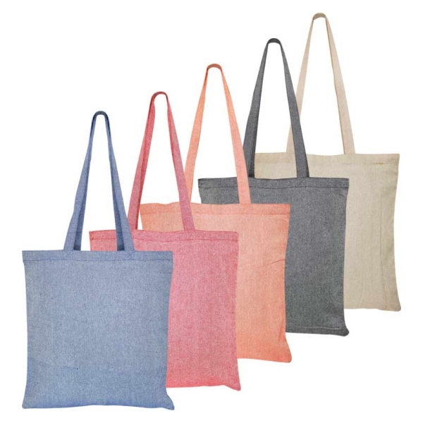 Bolsa 100% Algodón Reciclado de 130g/m2, modelo "DENIM". Manillas de Algodón natural de 80 x 2.5 cm. aprox. c/u.38x41 cm.
