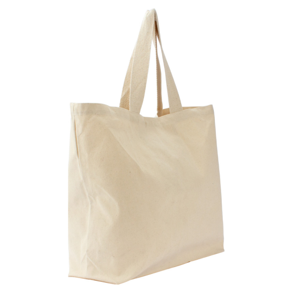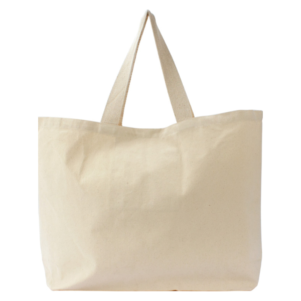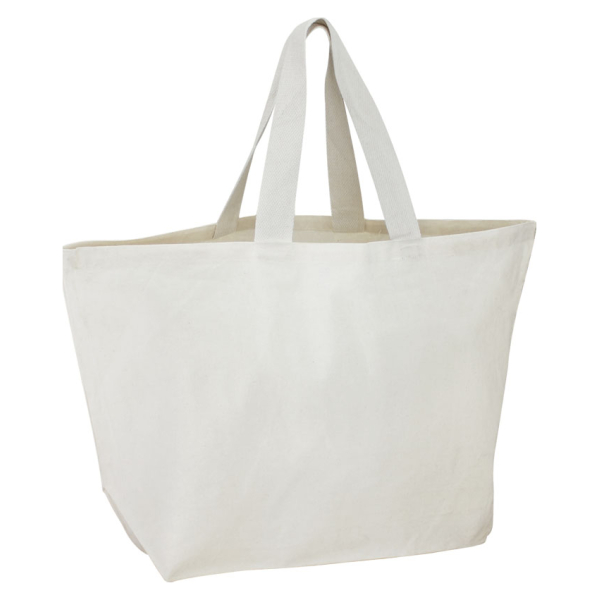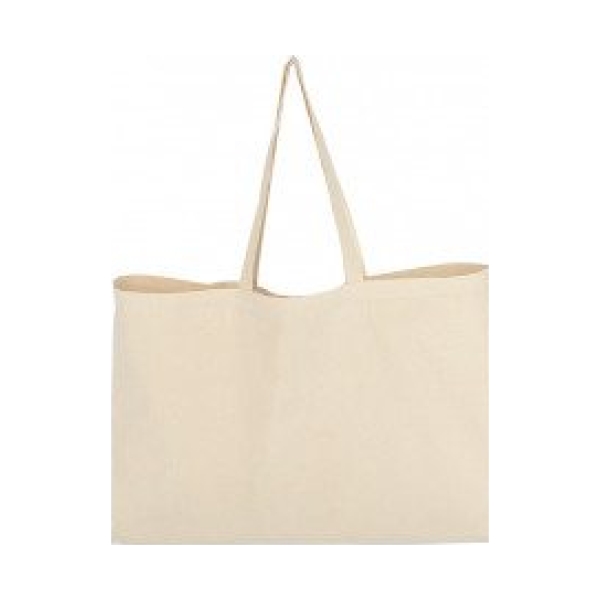 Bolsa de compras grande 100% Canvas Algodón natural de 10oz. (280 g/m2). Contiene doble manilla cintas de Algodón natural, detalle color: 1 manilla larga de 102 x 3 cm y 2 manillas cortas de 35 x 3 cm. aprox. c/u.50 x 42 x 19 cm. aprox.