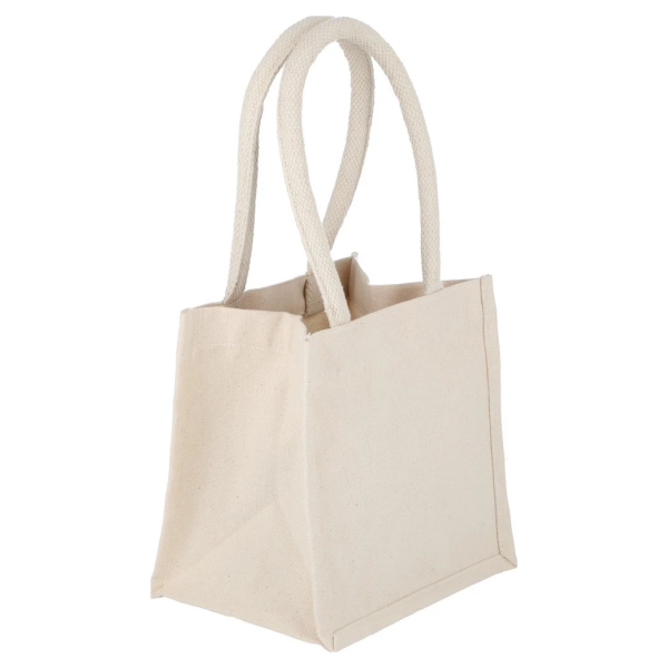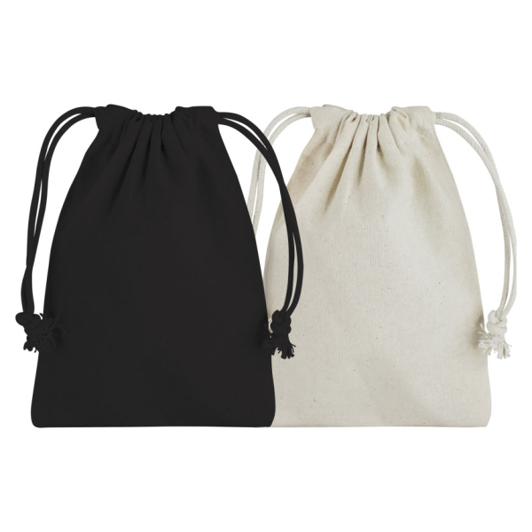 Bolsa ecológica de algodón, tamaño pequeño con manillas de cordón de algodón grueso. Su mayor gramaje la hace una bolsa resistente y de llamativa presentación ideal para la entrega de productos promocionales. Lavable, reutilizable y 100% biodegradable. El algodón es una de las fibras naturales más utilizadas en productos textiles, .20x20x15.