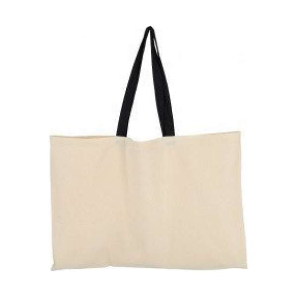 Bolsa ecológica de algodón y manillas negras. Gran tamaño con una presentación minimalista y natural. Bolsa lavable, reutilizable y 100% biodegradable. El algodón es una de las fibras naturales más utilizadas en productos textiles.40x60.