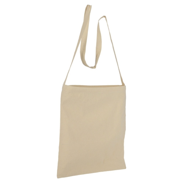 Bolsa ecológica de algodón, tipo morral con manilla plana extra larga. Presentación natural. Bolsa lavable, reutilizable y 100% biodegradable. El algodón es una de las fibras naturales más utilizadas en productos textiles, al lavarse puede reducir un poco su tamaño.42x38.
