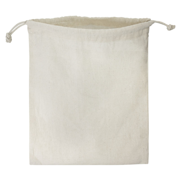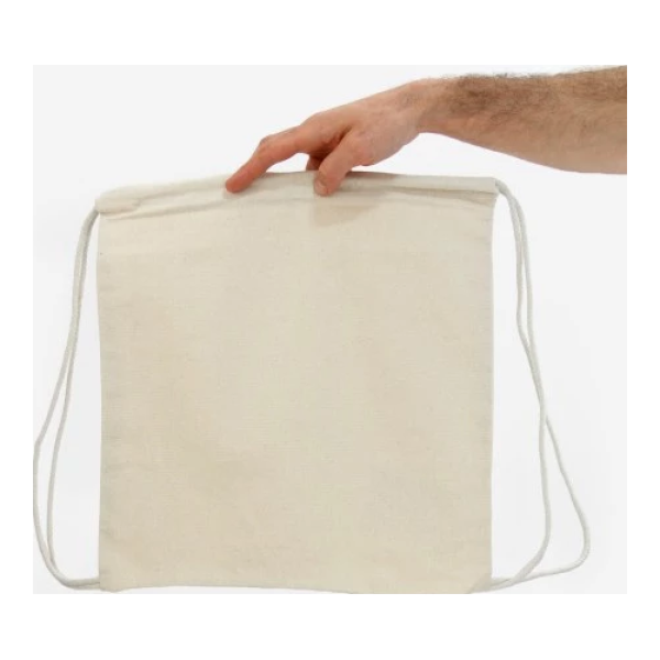 Bolsa tipo mochila con cordón de algodón natural para cierre. Cuenta con costuras en los bordes inferiores para mayor resistencia. Bolsa lavable, reutilizable y 100% biodegradable. El algodón es una de las fibras naturales más utilizadas en productos textiles, .42x38.