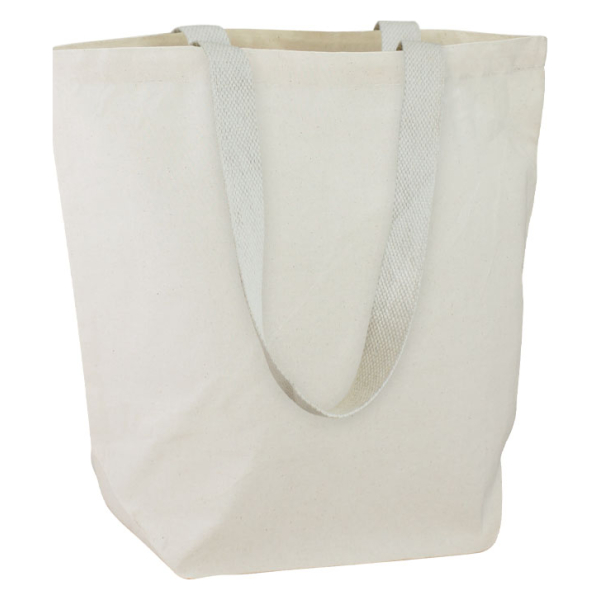 Bolsa de Canvas Algodón natural de 10 onzas, modelo «Nepal». Manillas redondas de Algodón natural de 60 x 2.5 cm. aprox. c/u. Cierre velcro interior.40x40x20 cm.