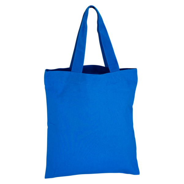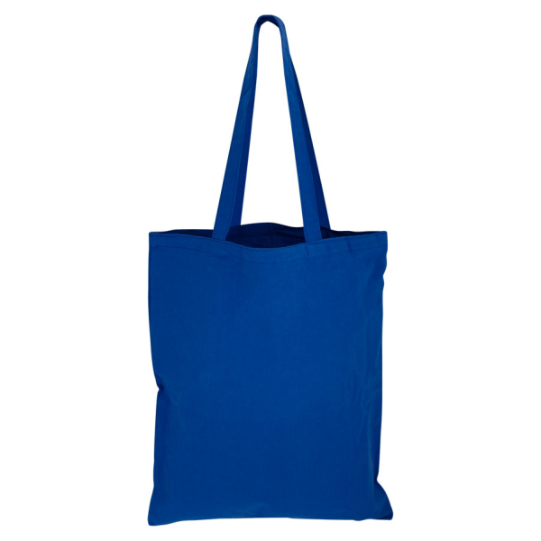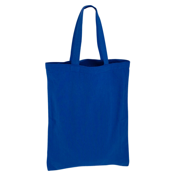 Bolsa 100% Algodón teñido de 130g/m2, modelo "Thailand". Manillas de Algodón teñido de 80 x 2.5 cm. aprox. c/u. 39x42 cm aprox.