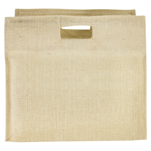 Bolsa de Yute modelo "Biosfera", con recubrimiento laminado interior. Fuelle de yute. Parte superior reforzada con doble tela yute y manillas troqueladas.40 x 36 x 15 cm aprox / Manillas troqueladas de 9 x 3 cm aprox c/u.La bolsa de yute reforzada con asas troqueladas es un regalo promocional altamente efectivo porque combina sostenibilidad (material natural, biodegradable) y calidad/durabilidad (asa reforzada para cargas pesadas), ofreciendo alta visibilidad para la marca en el día a día y eventos, ideal para un mensaje ecológico y premium, usándose en compras, merchandising, embalaje de productos gourmet o cosméticos naturales, y reflejando compromiso ambiental. Posiciona la marca como ecológica y responsable con el medio ambiente, usando un material natural, biodegradable y reutilizable.