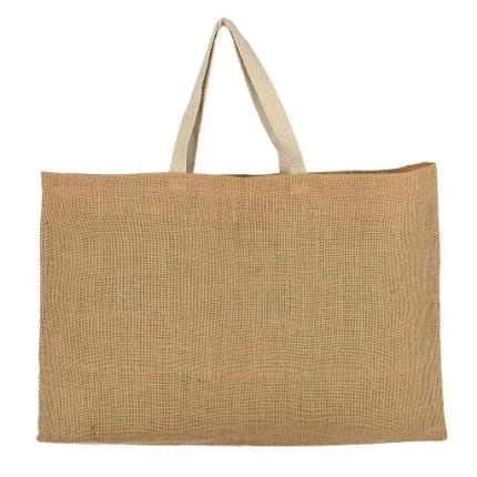 Bolsa ecológica hecha con fibras de yute y manillas planas de algodón natural. Presentación rústica y natural.40x60.