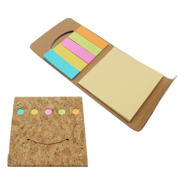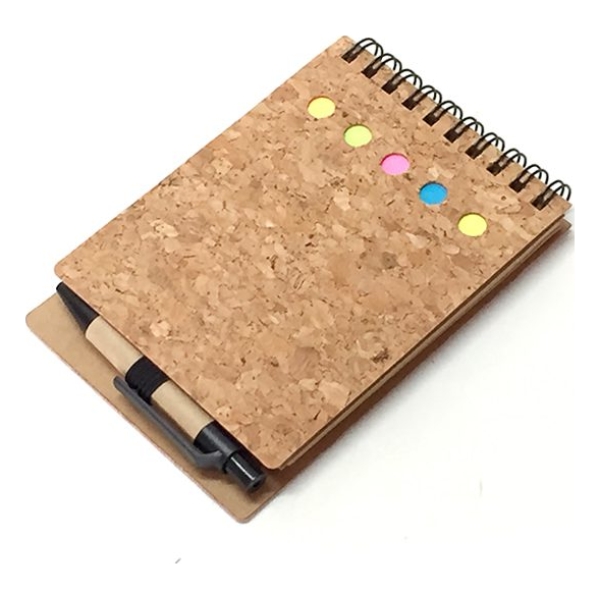 Memo set ecológico libretita con tapa de corcho. Incluye set de post-it y bolígrafo ecológico.