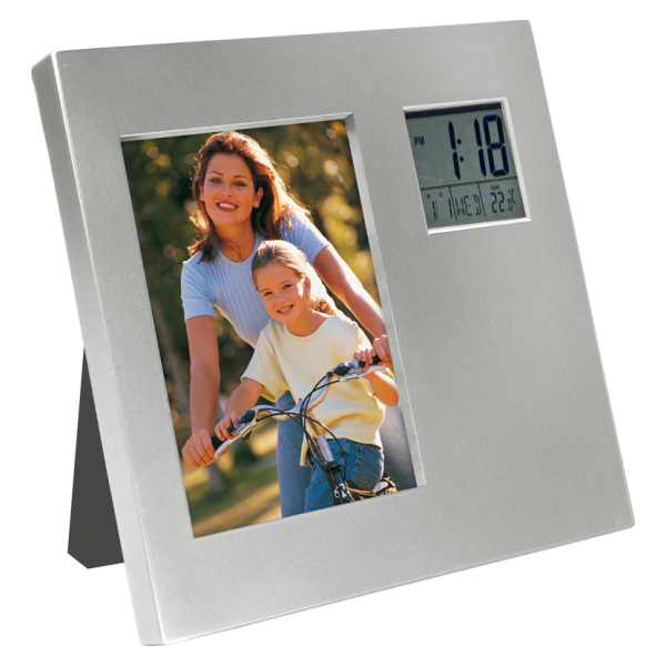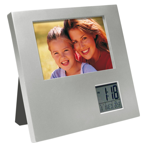 Porta-Retrato de Escritorio para foto de 13 x 9 cm con Estación Meteorológica Digital, incluye Reloj-Alarma-Calendario-Termómetro. Posición Horizontal o Vertical.Tamaño: 17.8 x 17.8 x 1.9 cm.Producto agregado con éxito a la lista de cotizaciones