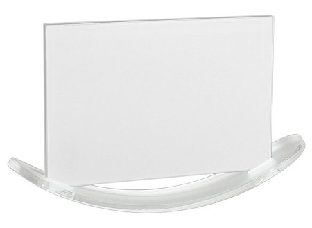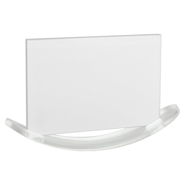 Porta-Retrato balancín para Sublimación. Base curva Acrílico frozen. Porta-Foto de Vidrio de 15.3 x 10.2 x 0.3 cm. Presentación en caja de Cartón blanco.
