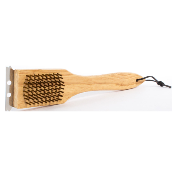 Escobilla de madera con cerdas de alambre de cobre de 1cm. de largo y placa de acero inoxidable, ideal para limpiar parrillas. Tamaño: 30.5 x 6.2 x 1.5 cm.Producto agregado con éxito a la lista de cotizaciones