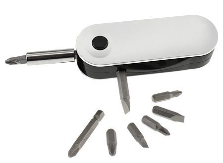 Set de Supervivencia "XD", incluye Cortapluma 12 funciones + Llavero-Linterna LED metálica de 9 cm + 3 pilas botón tipo AG3, presentación en elegante Estuche Negro con Gris.