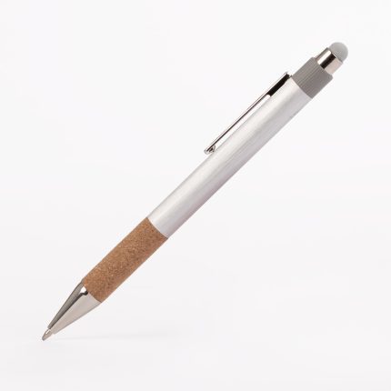 ZERMATT combina diseño moderno con una historia de impacto positivo. Fabricado con aluminio reciclado y grip de corcho natural de origen responsable, este bolígrafo refleja una opción consciente para quienes valoran el diseño y el planeta. Mecanismo de pulsador, detalles cromados y punta touch gris completan un artículo personalizable ideal para marcas que escriben el futuro con coherencia y estilo.