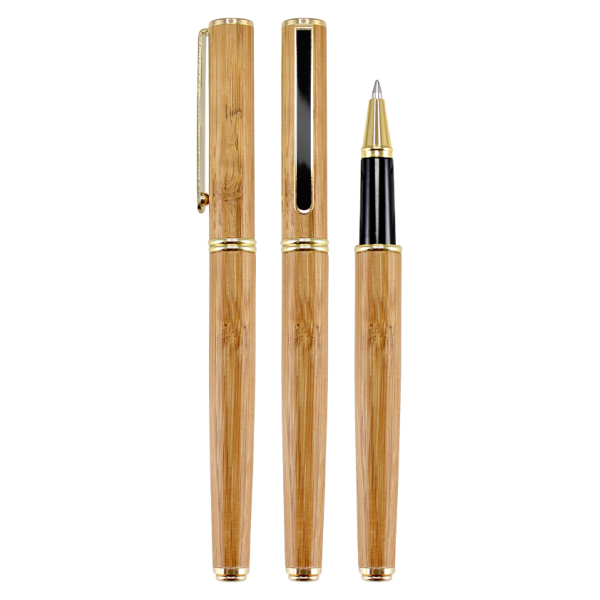 Deluxe Roller Pen Bamboo Deluxe Roller Pen Ejecutivo de Madera de Bamboo con terminales dorados, tinta negra.