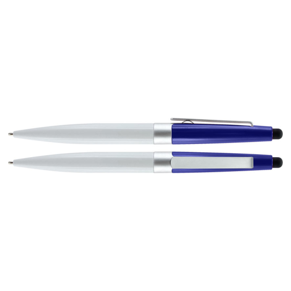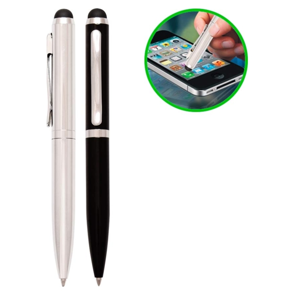 Bolígrafo modelo "Biarritz", mitad metálico/mitad plástico, incluye puntero Touch-Screen. Escritura negra.