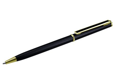 Bolígrafo Metálico negro "Tourist", con terminales dorados. Especial para el rubro Hotelería y Turismo. Escritura negra.