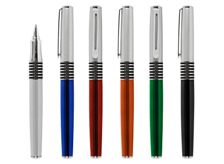 Roller Ball Metálico modelo "Manager", cuerpo de color metalizado y tapa plateada satin. Tinta negra.