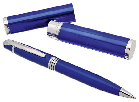 Bolígrafo metálico modelo "Enix", Refill Metálico Parker type. Escritura azul. Presentación en fino estuche cilíndrico metálico al tono.Mas colores Rojo Y negro.