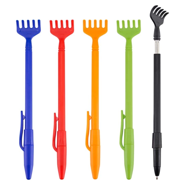 Bolígrafo plástico de color con tapa, con Manito Rascadora expansible (tipo antena). Escritura azul.