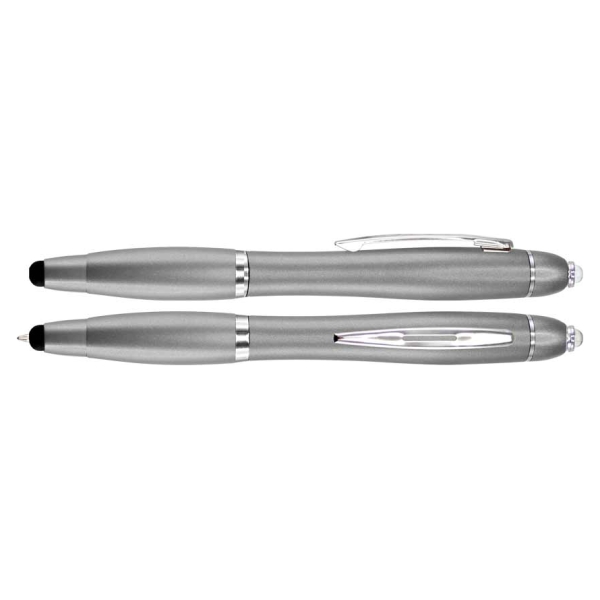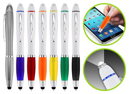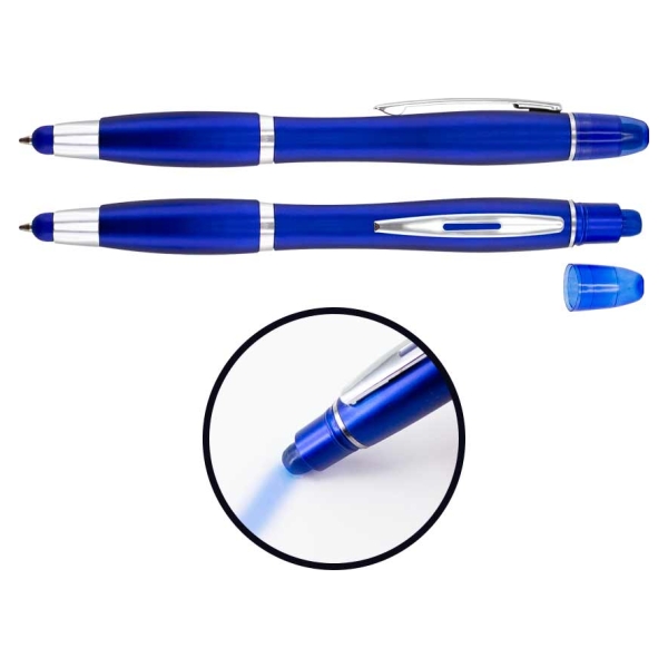 Bolígrafo plástico modelo "Wind Stella LED". Incluye puntero "Touch-Screen" y linterna LED. Escritura Azul.
