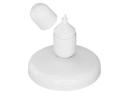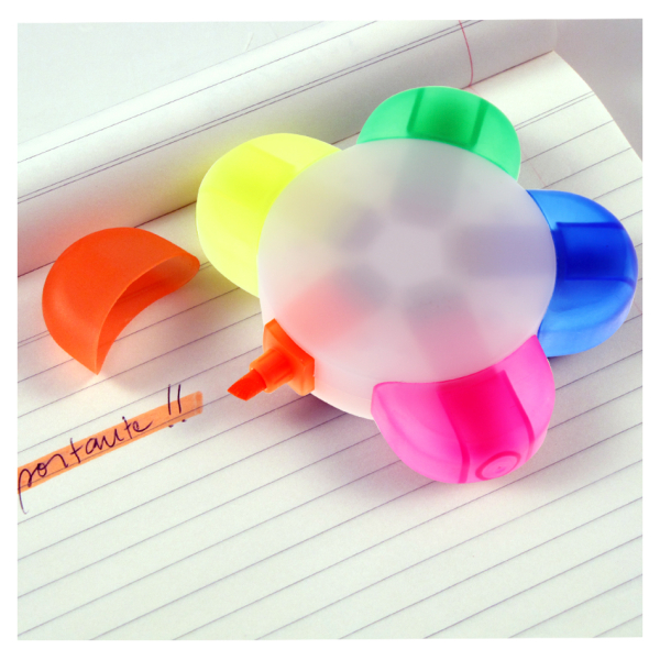 Destacador amarillo "Cápsula" blanca, sobre base plástica blanca. Cuenta con sistema imantado que sostiene la cápsula de pie sobre la base, estabilizándola como "mono porfiado". Amplia área de impresión tanto en la cápsula como en la base. Presentación en caja de regalo blanca. Importante: presionar la punta sobre papel por 3 segundos para que la tinta amarilla baje.