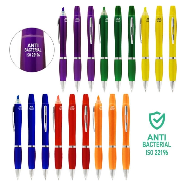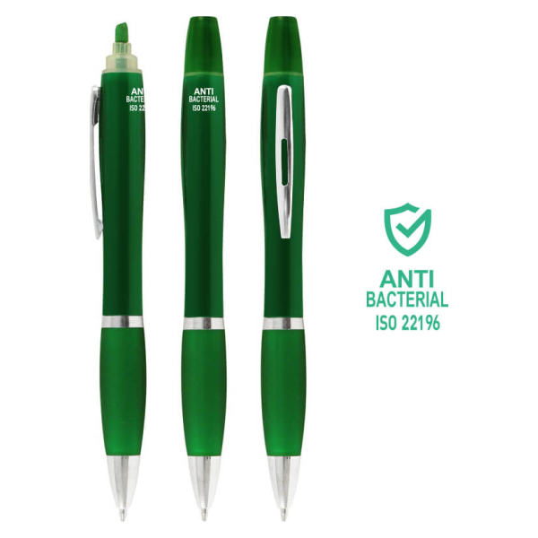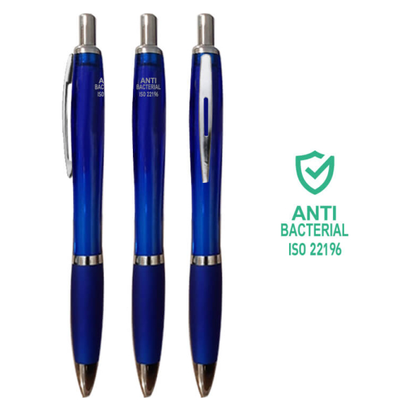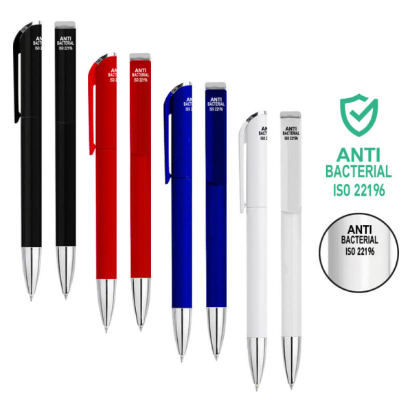 - Bolígrafo fabricado en ABS y tratado con iones de plata para inhibir y evitar el proliferamiento de bacterias en su cuerpo.