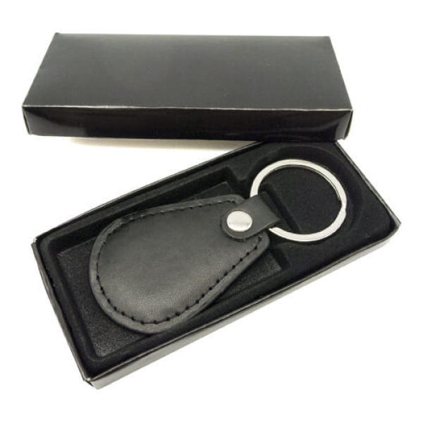 Llavero símil cuero color negro. Presentación en estuche de cartón laminado color negro con cuna interior de terciopelo.Producto agregado con éxito a la lista de cotizaciones