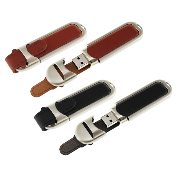 Pendrive ejecutivo símil cuero café con hebilla metálica. Capacidad de 16 GB. Presentado en estuche metálico con ventana traslúcida.Producto agregado con éxito a la lista de cotizaciones