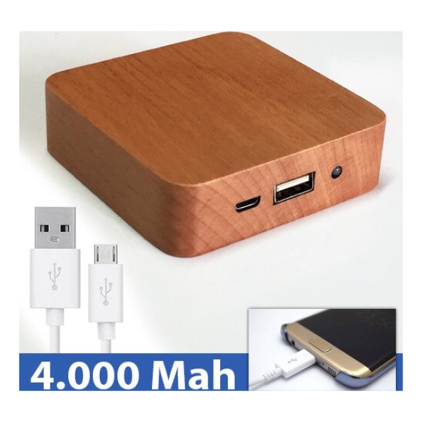 Batería externa cuadrada de madera de bambú. Capacidad de 4.000 mAh. Presentado en estuche de cartón reciclado duro. Incluye cable de carga USB/micro USB.Producto agregado con éxito a la lista de cotizaciones