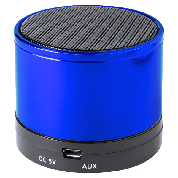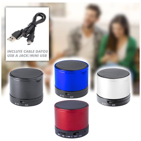 Compacto parlante metálico de conexión bluetooth. De diseño bicolor con suave acabado y conexión bluetooth 3.0, ofrece 3W de potencia, tiene función de manos libres, una ranura para tarjetas mini SD de hasta 64 GB de capacidad, función radio FM, entrada auxiliar de línea mediante conexión jack de 3,5mm y soportes de goma antideslizantes en la base. Compatible con iOS y Android, incluye cable de carga mini USB, cable auxiliar jack de 3,5mm y viene presentado en atractiva caja de diseño.