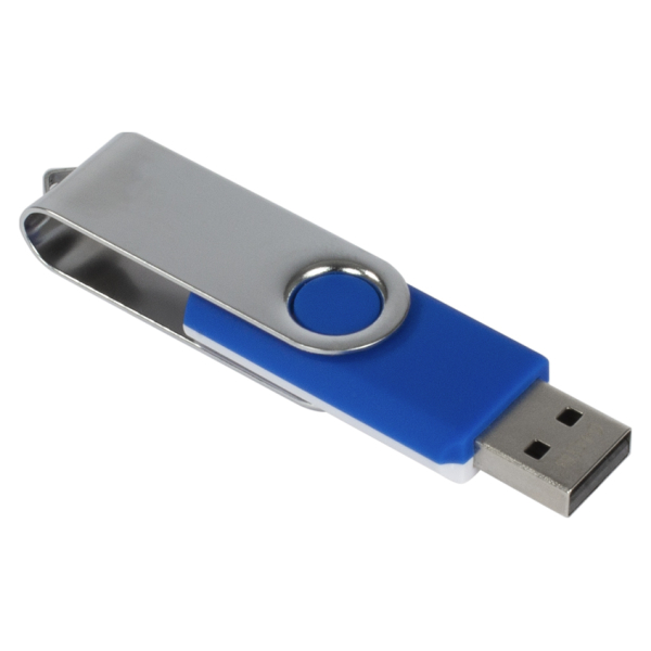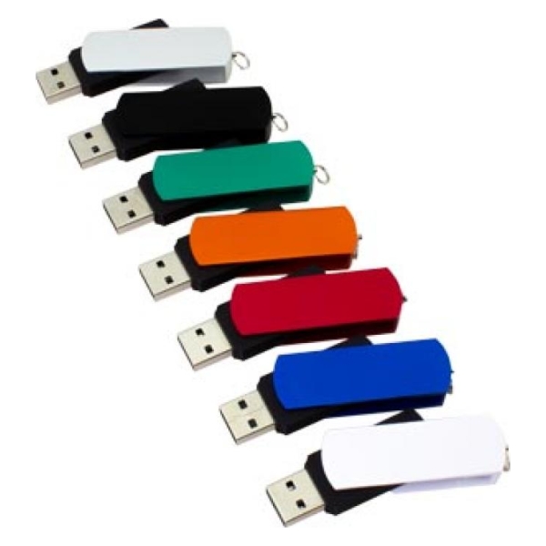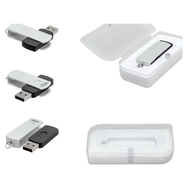 USB Pendrive con carcasa metálica de giro, de 16 GB de capacidad. Presentación en caja de PVC traslúcido.