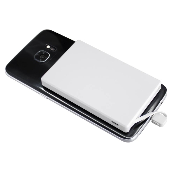 Ahora puedes llevar tu cargador adosado a tu teléfono a todos lados!! con el nuevo Cargador Power Bank con 35 ventosas que se adhieren firmemente a tu celular o tablet, con conexión directa de cable cargador dual (incorporado) para iPhone / Android micro USB. Capacidad 2500mAh. Incluye cable cargador USB/Micro USB. Batería recargable incorporada. Amplia superficie de impresión. Presentación en estuche de PVC translúcido reforzado. Tamaño: 9.4 x 5.9 x 0.9 cm / Estuche 12.4 x 8.4 x 2 cm.Producto agregado con éxito a la lista de cotizaciones