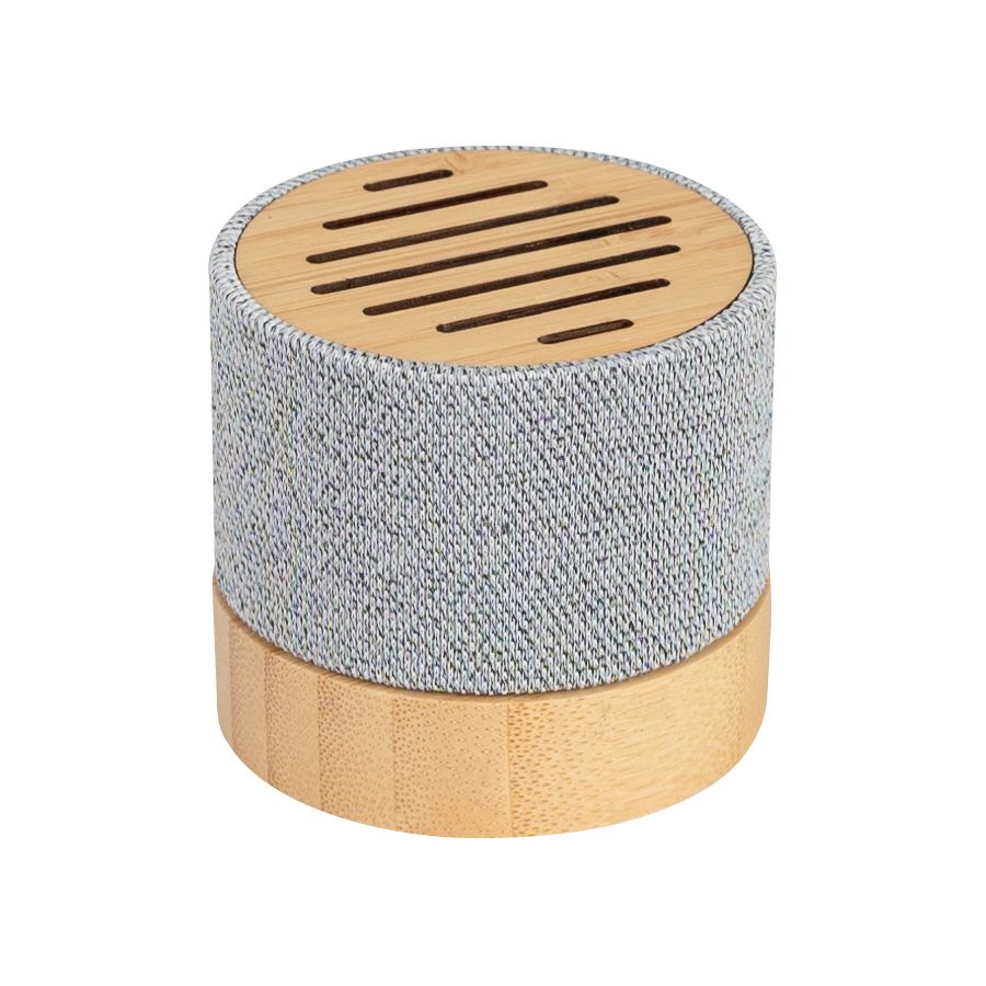 Parlante altavoz de Bamboo y tela reciclada RPET modelo «TRUE». 1. Controlador bluetooth V 5.3 2. Potencia: 3W 3. Frecuencia: 4 Ώ 4. Sensibilidad: 95db 5. Impedancia: 40 ohms 6. Duración: 3 a 4 horas 7. Capacidad de la batería: 300mAh 8. Rango de alcance: hasta 10M 9. Input / Output: 3.7V, 1000 mA (1A) 10. Embalaje: Bolsa 100% compostable + caja de regalo en cartón color natural. 11. Interface con cable negro USB / tipo-C