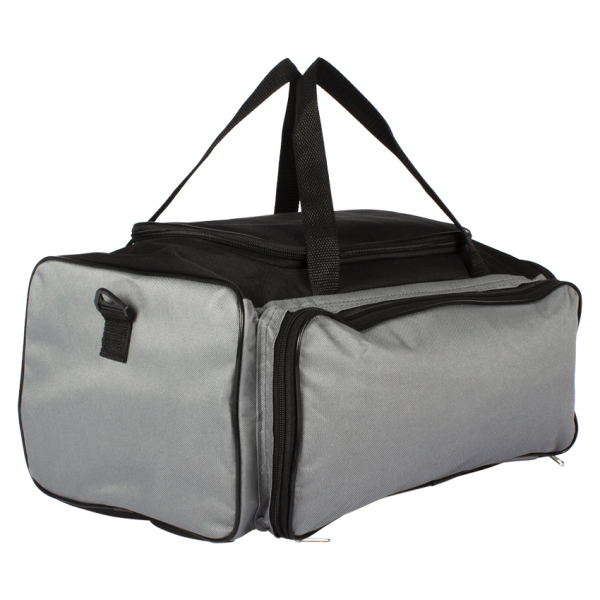 Bolso de Viaje 3-en-1. Incluye bolso, cooler y parrilla. Ideal para viajes, camping y picnic.Tamaño: D30 x 18 cm. / Parrilla metálica: D29.5 x 13 cm.Producto agregado con éxito a la lista de cotizaciones