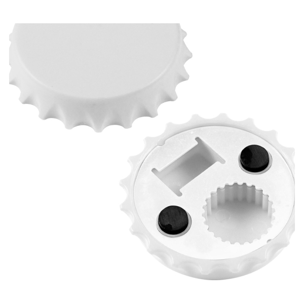 Destapador y Abridor de tapas twist-off, con forma de tapa de botella. Imantado para refrigerador 8 cm.