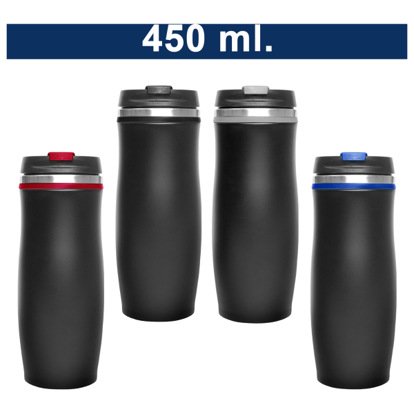 Mug térmico de acero inoxidable con tapa rosca y dosificador. Capacidad de 450ml.