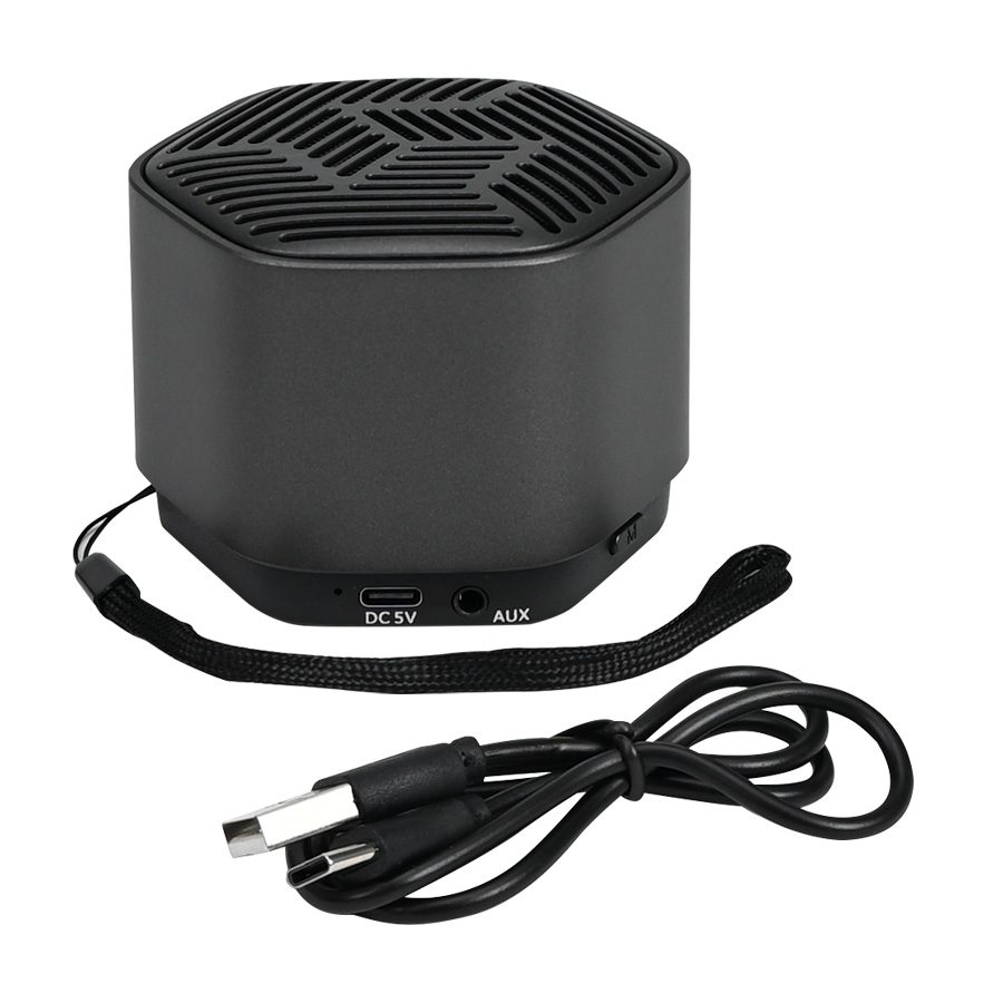 Función principal: Bluetooth/conversación telefónica/iluminación LED/lector de tarjetas TF/FM/AUX Material: ABS con revestimiento metálico Versión de Bluetooth: Bluetooth5.2 Rango de trabajo: 10 metros Tamaño del altavoz: Ø52 mm, 4Ω/5W Voltaje del altavoz: 5W Batería: 400 mAh Tiempo de duracion: 1-2,5 horas Tamaño del producto: 82*82*61mmPeso del producto: 240 g Color: Gris Acero Presentación: Bolsa frozen + caja de cartón de color negro. Manual de usuario en inglés y español. Nombre de emparejamiento: C84 Cables: Cable USB / Micro USB en color Negro + Cable AUX/AUX en color negro.