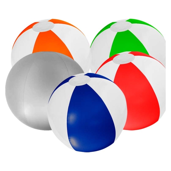 Pelota de Playa Inflable de PVC con 6 gajos. Se entrega desinflada dentro de una bolsita transparente de 15 x 15 cm. Se puede imprimir fácilmente en serigrafía ya sea desinflada o inflada. Tamaño: Desinflada 35 cm / Ø Inflada 27 cm.Producto agregado con éxito a la lista de cotizaciones