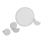 Espejo metálico cuadrado doble, con tapa, con cuadrado para Sublimación. Presentación en caja laminada blanca. Tamaño: 6 x 6 cm / Cuadrado blanco para sublimación 5.4 x 5.4 cm.
