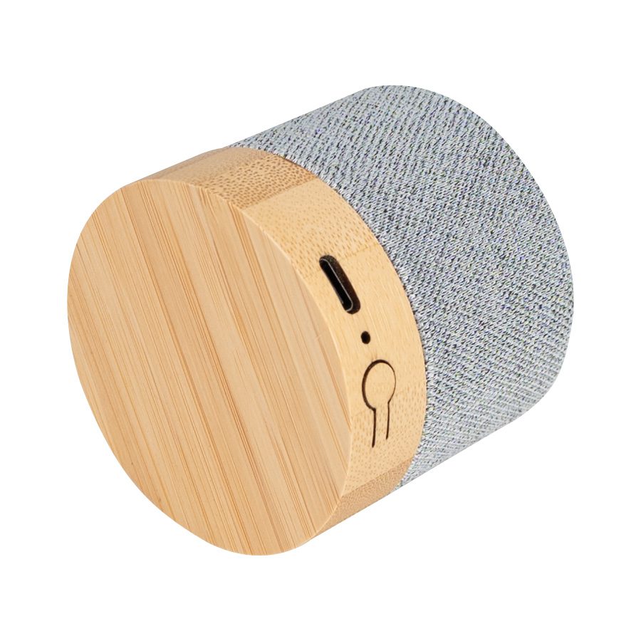 Parlante altavoz de Bamboo y tela reciclada RPET modelo «TRUE».