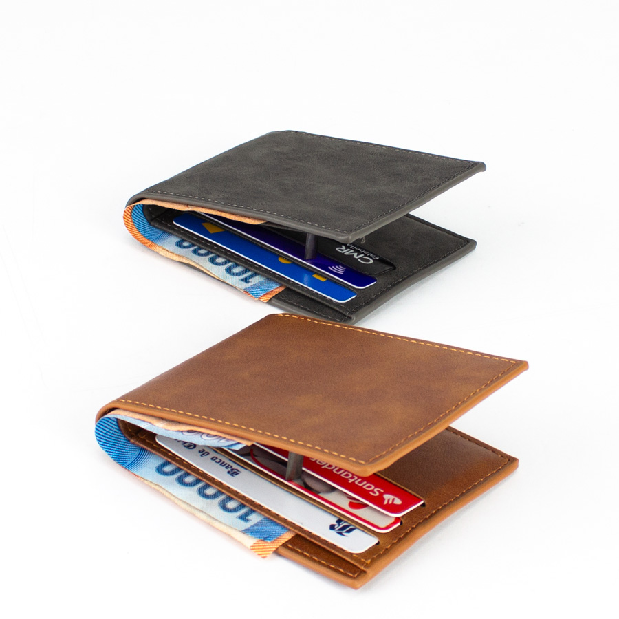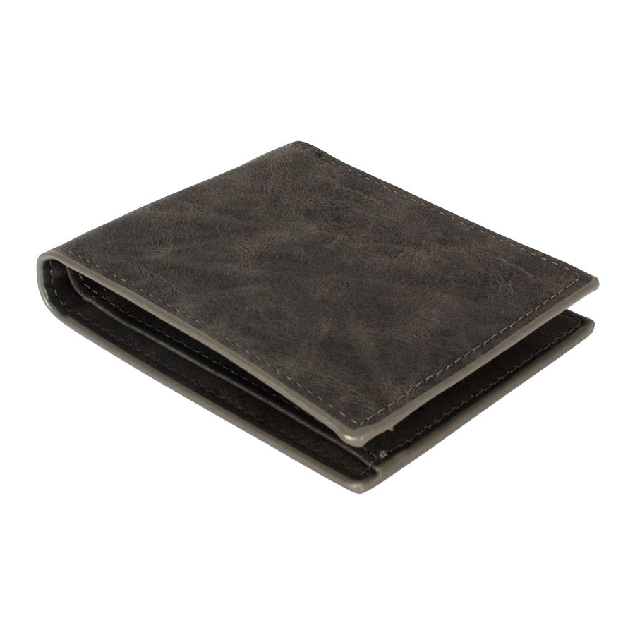 Billetera de eco-cuero, modelo «GEORGIA». Contiene 6 compartimentos interiores, uno de ellos con cremallera. Presentación en bolsa frozen y caja de cartón forrado negro opaco.