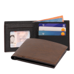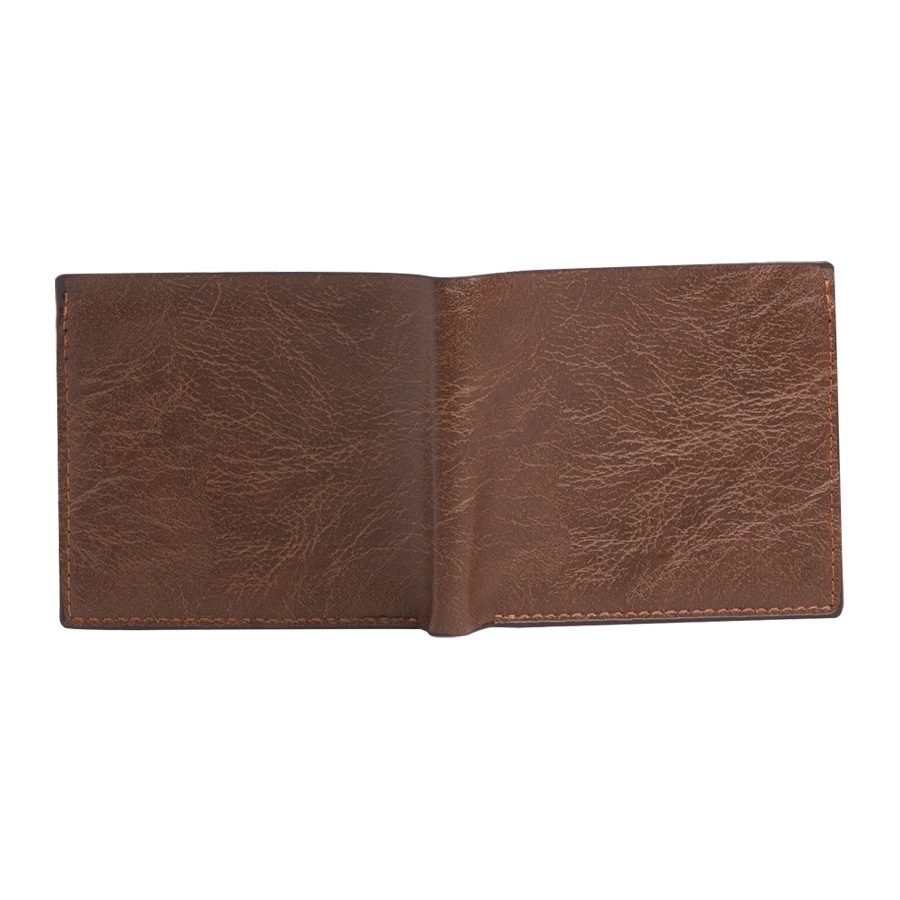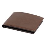Billetera de eco-cuero color café, modelo «DENVER». Contiene 6 compartimentos interiores. Presentación en bolsa frozen. Tamaño: 12 x 9.4 x 1.5 cm. (cerrada) / 21.6 x 9.4 x 0.5 cm. (abierta)