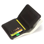 Billetera de eco-cuero, formato vertical, modelo «LAM». Contiene 5 compartimentos interiores. Presentación en bolsa frozen y caja de cartón forrado negro opaco.Tamaño: 8.5 x 11 x 1.5 cm. (cerrada) / 16.5 x 11 x 0.5 cm. (abierta) / 12.9 x 10.3 x 2.3 cm. (caja)